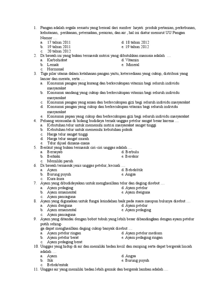 Soal Soal Unggas Pedaging Dan Petelur from imgv2-2-f.scribdassets.com Jawaban soal ayah memelihara ayam sebanyak 40 ekor dalam satu kandang sd kelas 4 6 tvri 16 juli tribunnews com mobile from m.tribunnews.com Usus dan jeroan ayam setelah dikeringkan dapat dijadikan sebagai pakan ternak unggas. Tugas mandiri budidaya ternak unggas (luht4339) petunjuk: Dibawah ini yang merupakan pilar utama dalam ketahanan pangan adalah. Oleh lahan diposting pada 20/06/2021. Contoh soal jawaban prakarya kwu kelas 12 unggas dll unknown november 29. 53 cara promosi produk usaha budidaya unggas petelur dan strategi pemasarannya jasa pembuatan website 40 soal dan jawaban tentang unggas pedaging.